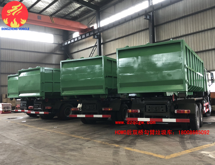 該車型采用重汽豪沃后雙橋336馬力專用底盤,上裝是可伸縮勾臂式結(jié)構(gòu),氣動控制,鋼絲胎。