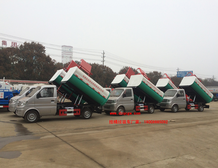 我公司掛桶垃圾車主要性能:采用鏈條和液壓油缸聯(lián)動(dòng)裝置,實(shí)現(xiàn)對(duì)垃圾斗提升和翻轉(zhuǎn),將多處垃圾斗內(nèi)的垃圾自動(dòng)收入車廂,并到目的地一次性自卸出來。具有全密封,自裝自卸功能,液壓操作。適用于全國(guó)通用標(biāo)準(zhǔn)的垃圾桶:鐵桶、塑料桶,并大量供應(yīng)垃圾掛桶。