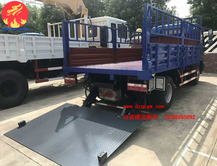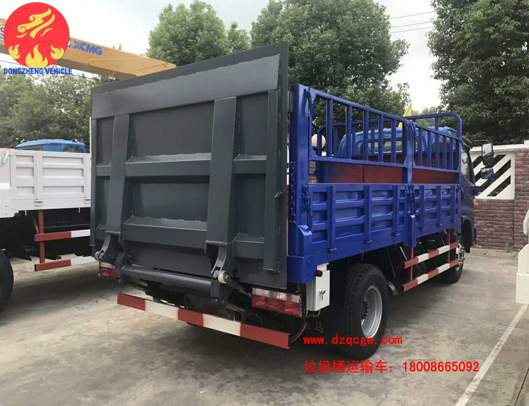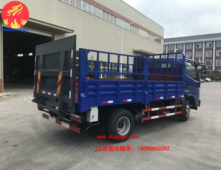 由于人民生活水平不斷提高,為了滿足人們對垃圾治理的及時性、徹底性的需求。我公司近期推出一種新的垃圾運輸品種即桶裝垃圾運輸車。該類型的垃圾運輸車為國五排放,整車上藍牌,可以市內小區(qū)內穿梭,車廂為倉柵,尾部帶液壓尾板,可一次性處理20-30余桶生活垃圾。大大的提高了垃圾收集的速度。
