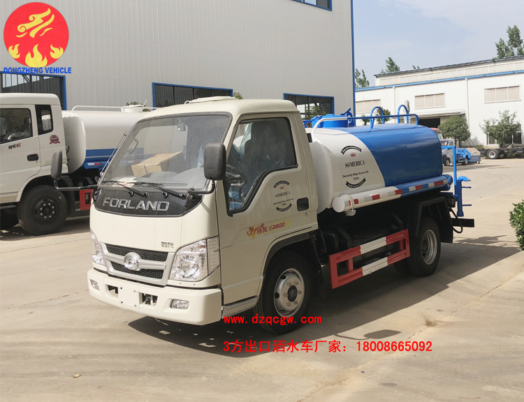 該車(chē)采用福田時(shí)代2600mm國(guó)二底盤(pán),罐體容積3方,帶前沖后灑后置工作平臺(tái)及綠化高炮,帶灑水專用灑水泵,可用于園林綠化、道路噴灑等。